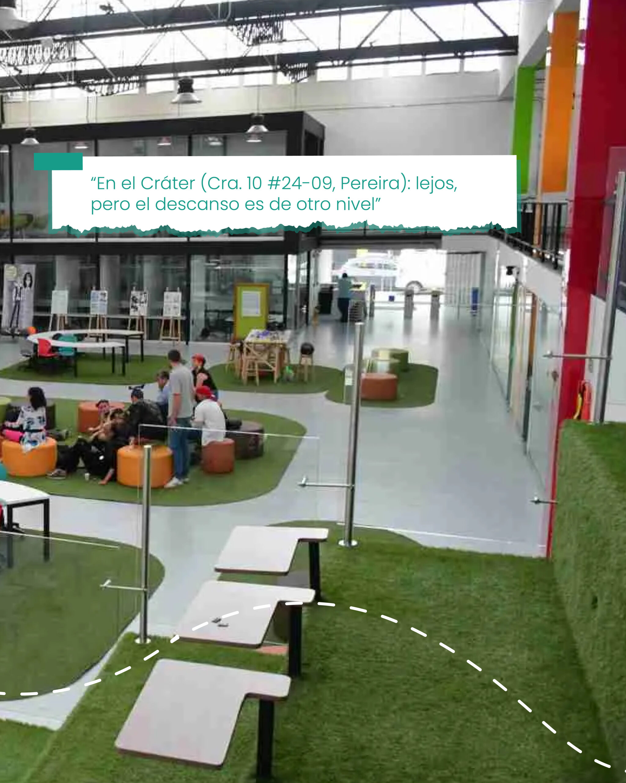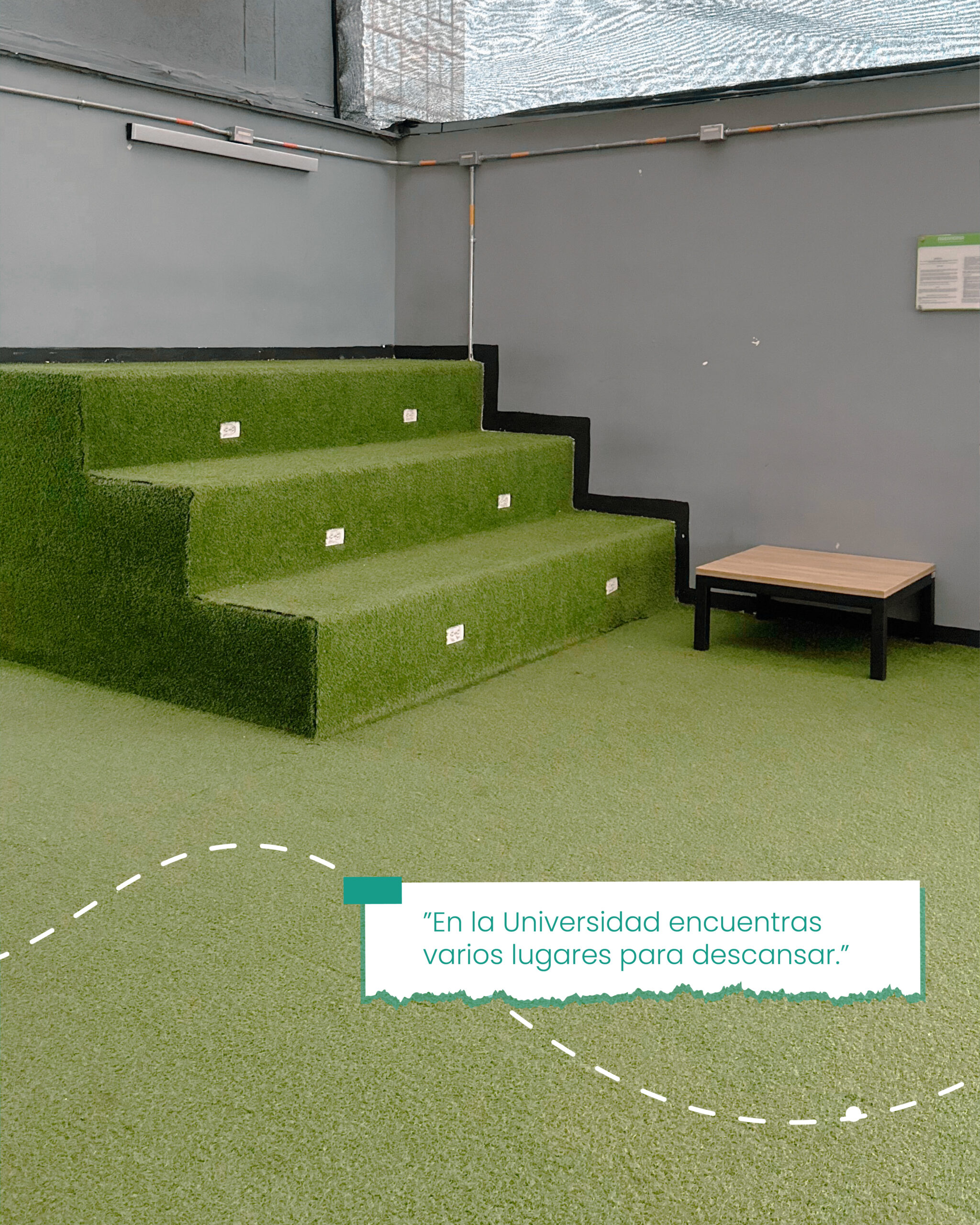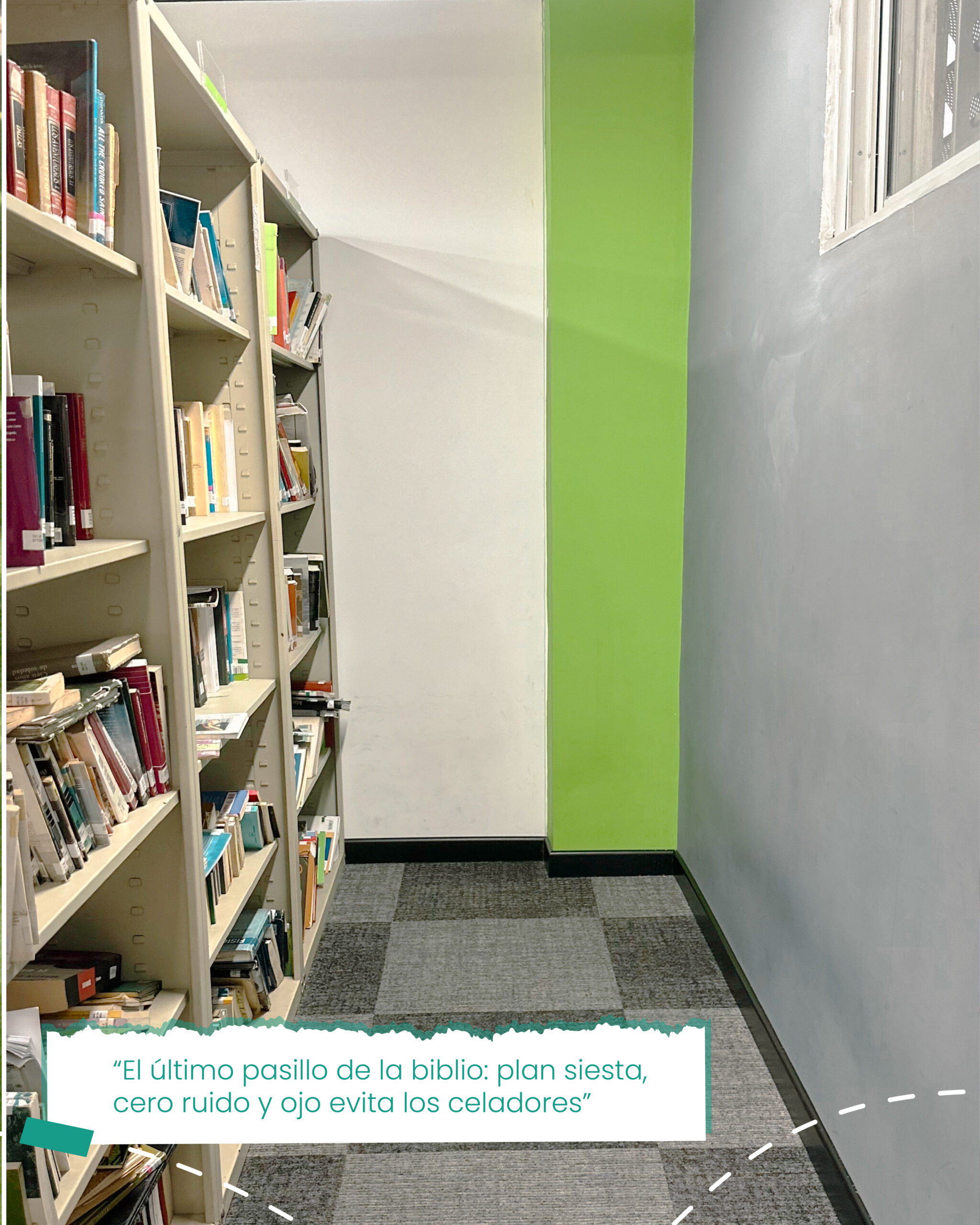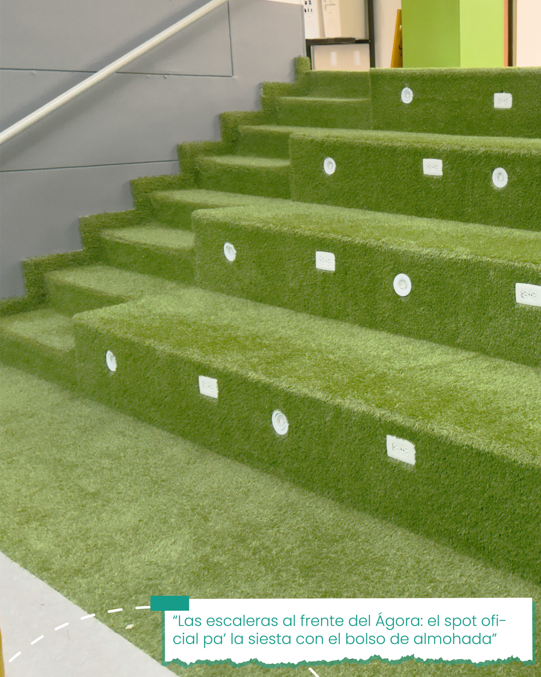Desde las escaleras del Ágora hasta el Cráter, siempre hay un lugar perfecto pa’ dormir un rato (más si el cansancio va ganando), recargar energía y seguir dándole duro a los parciales ☕🎒💚