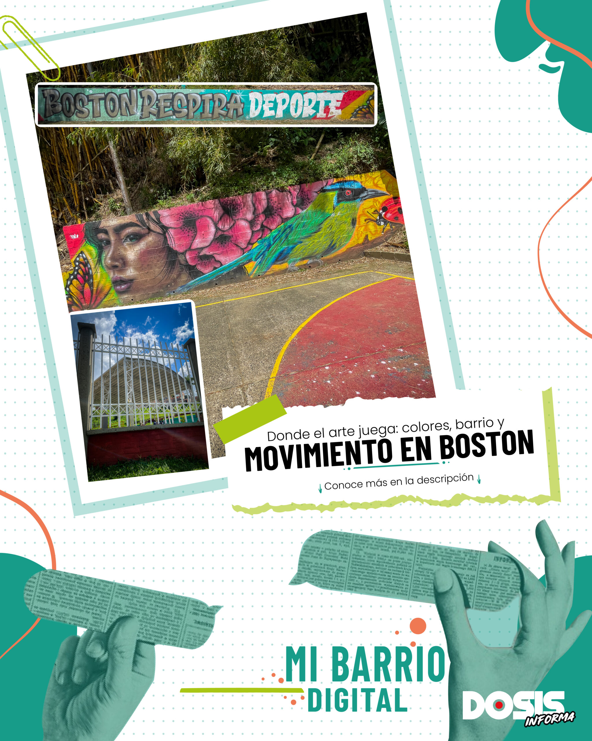 En el barrio Boston de Pereira, el arte y el deporte se fusionan en una misma cancha, creando un punto de encuentro entre la creatividad y el movimiento. Este mural, vibrante y lleno de vida, no solo decora el espacio: lo transforma. El cemento gris se convierte en un lienzo que respira identidad, color y orgullo barrial. Las figuras humanas, los animales y los trazos que recorren la pared parecen moverse con cada partido, con cada risa y con cada historia que se cruza sobre la cancha. Aquí, el balón y la pintura hablan el mismo idioma: el de la comunidad.