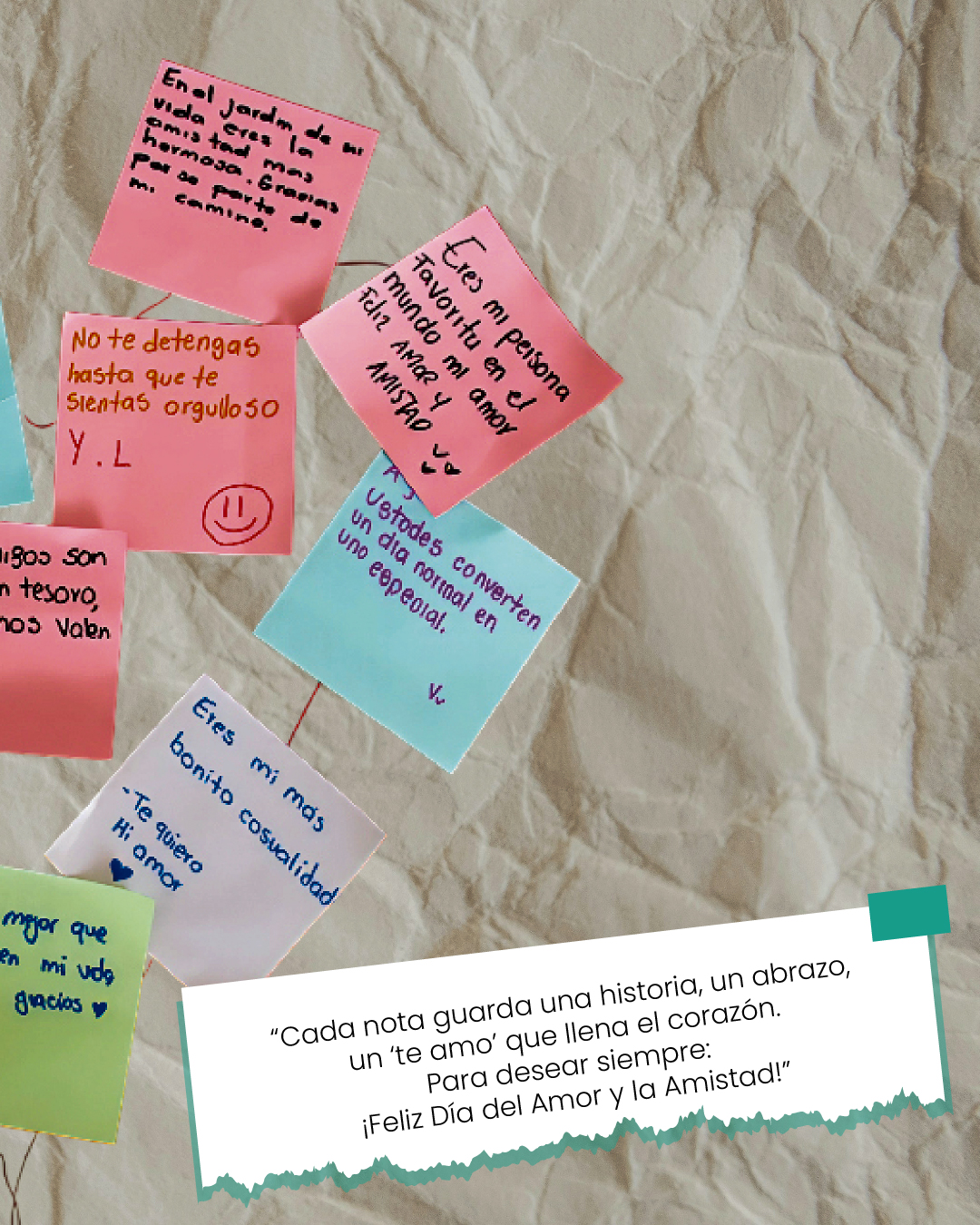 En cada nota habita una historia: un abrazo, una amistad y un amor en distintas formas que se resguardan en palabras, una emoción compartida. Este fotorreportaje revela la naturaleza de lo simple y cómo, con un pequeño detalle o un mensaje, se crean lazos que perduran y trascienden en el tiempo, recordándonos lo hermoso que es celebrar y tener siempre cerca el amor y la amistad.